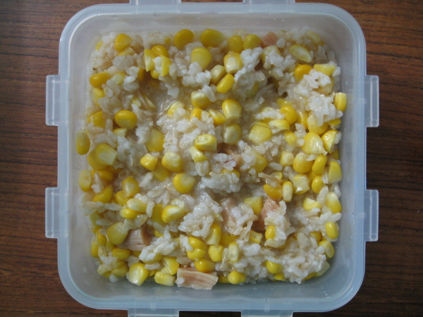 不過,話說回來...玉米夾雜著飯粒,總覺得跟某種噁心的東西很像...呸呸呸~我在說甚麼啊...那可是我的早餐啊~